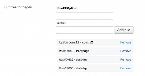 The Quark template uses few page suffixes which can be configured under the template settings in the Features tab: