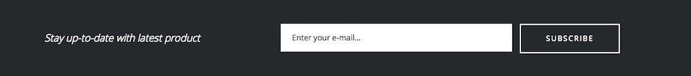<form action="#"> <small>Stay up-to-date with latest product</small> <input type="submit" value="Subscribe" class="dark btn-border" /> <input type="email" placeholder="Enter your e-mail..." name="email" required="required" /> </form>