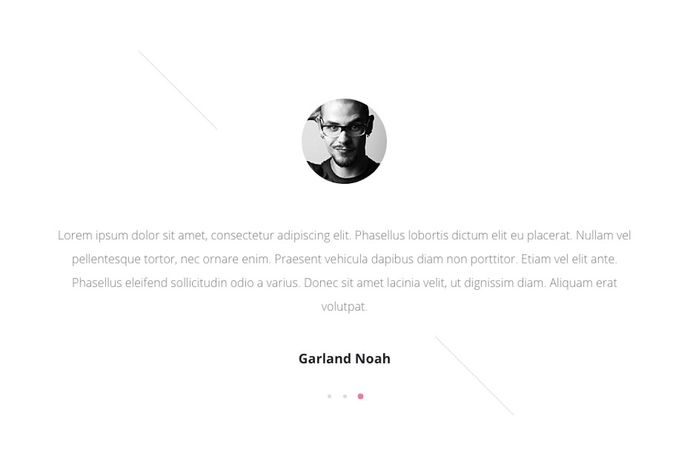 <div class="gk-testimonials" data-sr="scale up 50%" data-amount="3"> <div> <div> <blockquote> <img src="/images/demo/testimonials_avatar.png" alt="" /> <p>Lorem ipsum dolor sit amet, consectetur adipiscing elit. Phasellus lobortis dictum elit eu placerat. Nullam vel pellentesque tortor, nec ornare enim. Praesent vehicula dapibus diam non porttitor. Etiam vel elit ante. Phasellus eleifend sollicitudin odio a varius. Donec sit amet lacinia velit, ut dignissim diam. Aliquam erat volutpat.</p> <strong>Garland Noah</strong> </blockquote> <blockquote> <img src="/images/demo/testimonials_avatar.png" alt="" /> <p>Lorem ipsum dolor sit amet, consectetur adipiscing elit. Phasellus lobortis dictum elit eu placerat. Nullam vel pellentesque tortor, nec ornare enim. Praesent vehicula dapibus diam non porttitor. Etiam vel elit ante. Phasellus eleifend sollicitudin odio a varius. Donec sit amet lacinia velit, ut dignissim diam. Aliquam erat volutpat.</p> <strong>Garland Noah</strong> </blockquote> <blockquote> <img src="/images/demo/testimonials_avatar.png" alt="" /> <p>Lorem ipsum dolor sit amet, consectetur adipiscing elit. Phasellus lobortis dictum elit eu placerat. Nullam vel pellentesque tortor, nec ornare enim. Praesent vehicula dapibus diam non porttitor. Etiam vel elit ante. Phasellus eleifend sollicitudin odio a varius. Donec sit amet lacinia velit, ut dignissim diam. Aliquam erat volutpat.</p> <strong>Garland Noah</strong> </blockquote> </div> </div> </div>